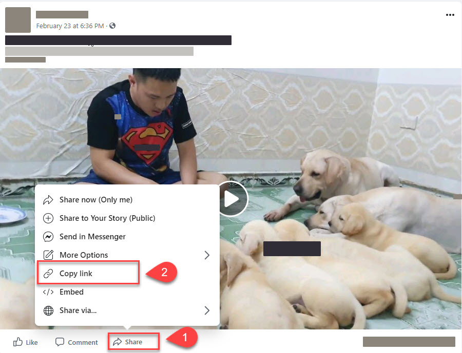 Step 1: Copy the Facebook video link the user wants to download to his device. Example Facebook video download link: https://www.facebook.com/watch/?v=154096149765179.